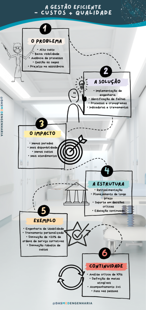 A otimização parte da tomada de decisões inteligentes, capazes de maximizar a eficiência e a segurança sem que a qualidade do atendimento seja comprometida. Um exemplo prático disso é a implementação de manutenções preventivas para os equipamentos médico-hospitalares (EMHs).